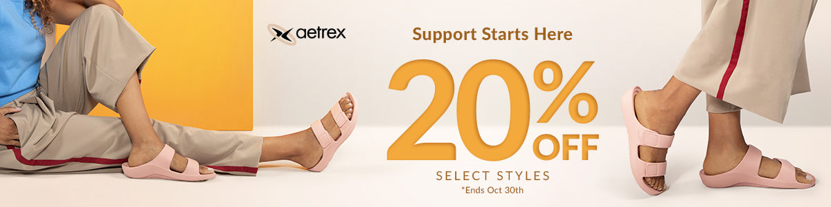 Offer available to all customers. Enjoy 20% off select Aetrex products on one-time purchases only. No minimum spend required. This offer cannot be combined with any other discounts and is valid from October 16 until October 30 at 4pm AEST.