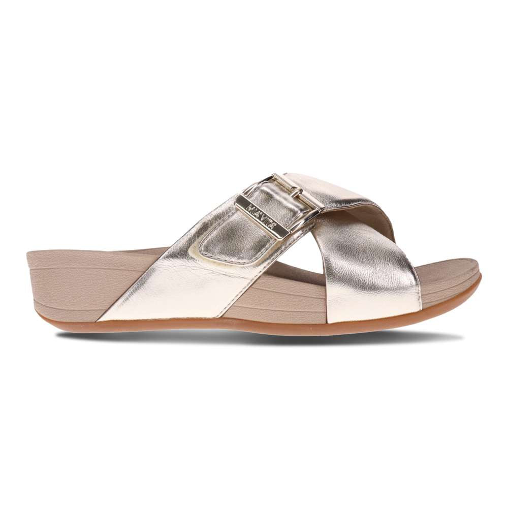 Meet Felice - the slide that proves simple can still be striking. With soft leather crossover straps, a sleek adjustable buckle and Mia Vita’s signature cushioned footbed, Felice is your go-to for effortless style and hidden comfort. From brunch dates to busy errands, this versatile slide in black, soft gold or white makes every step feel easy.